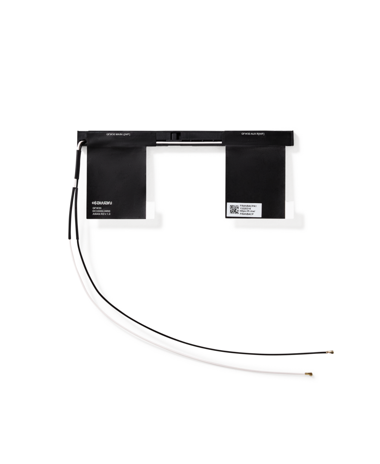Supporting 2.4GHz, 5GHz, and 6GHz bands, the Antenna module attaches to a Wi-Fi module over U.FL connectors to enable the latest Wi-Fi standards.
